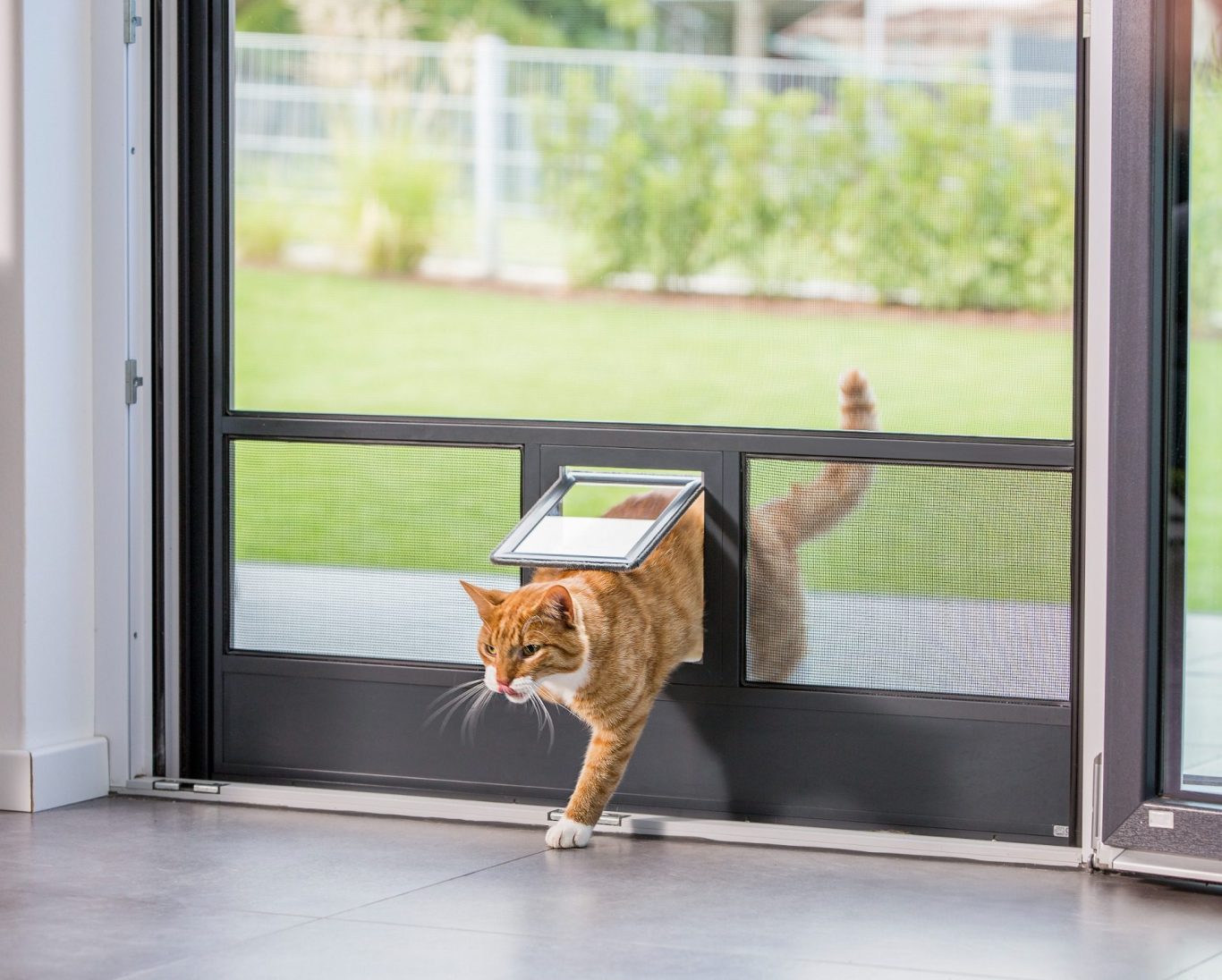 Spezielle Insektenschutz-Produkte für Haustiere mit kratzfestem Katzengewebe zur Kombination mit Katzen- oder Hundeklappen.