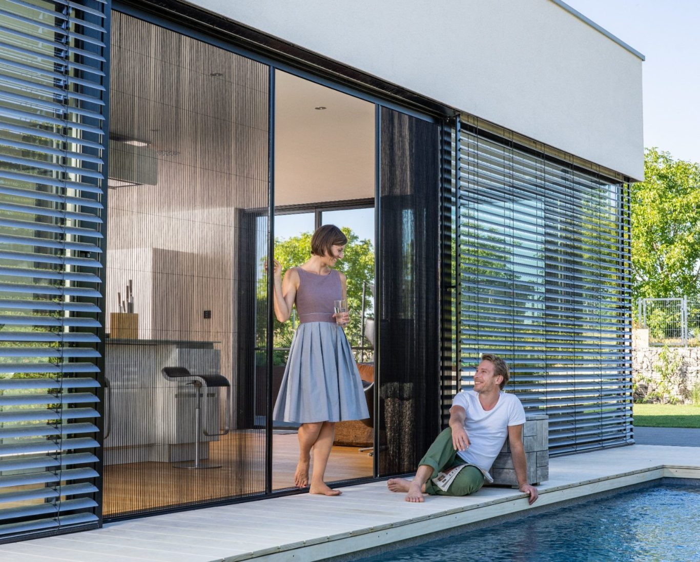 Als Alternative – wenn es eng zugeht – zu einem dreh- oder schiebbaren Fliegengitter bietet sich die NEHER Insektenschutz Plisseetür an.